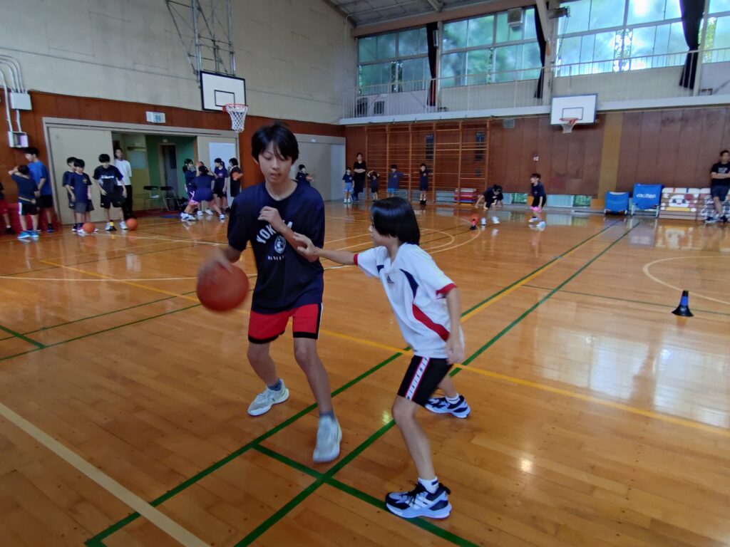 ドリブル1on1で部員と対決しました。当たり、プレッシャー、スキルの引き出し方など、中学校の環境で鍛えられたことが出ていたと思います。ちゃんと考えながら対決・観察すれば勉強になることをやっていましたが、部員は何かしら吸収できましたか?