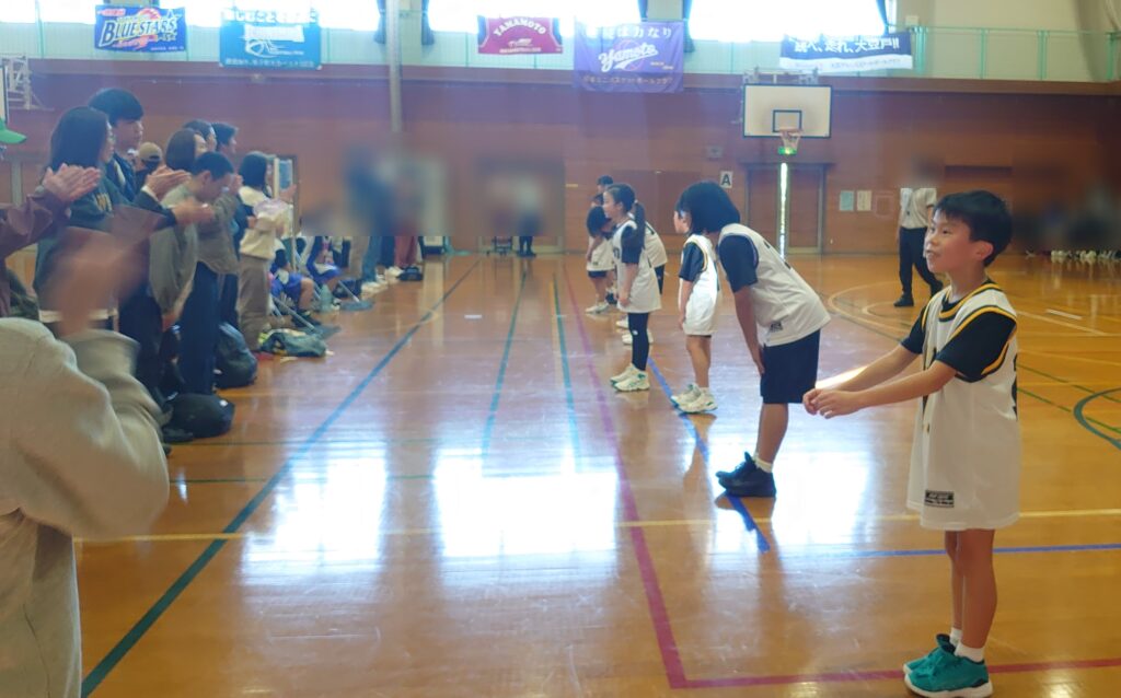 やはり相手チームの上手な選手の活躍があり、12点のビハインドをつけられ前半が終わりました。後半に入っても、その選手を中心とした攻めに耐えながら一時は数点差まで縮め、手が届く点差まで行きましたが、最終的に更に離されて残念ながら敗退を喫しました。
