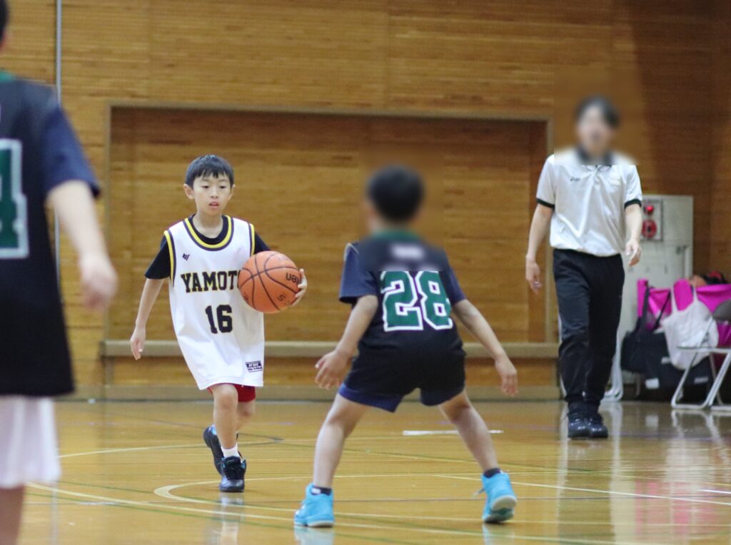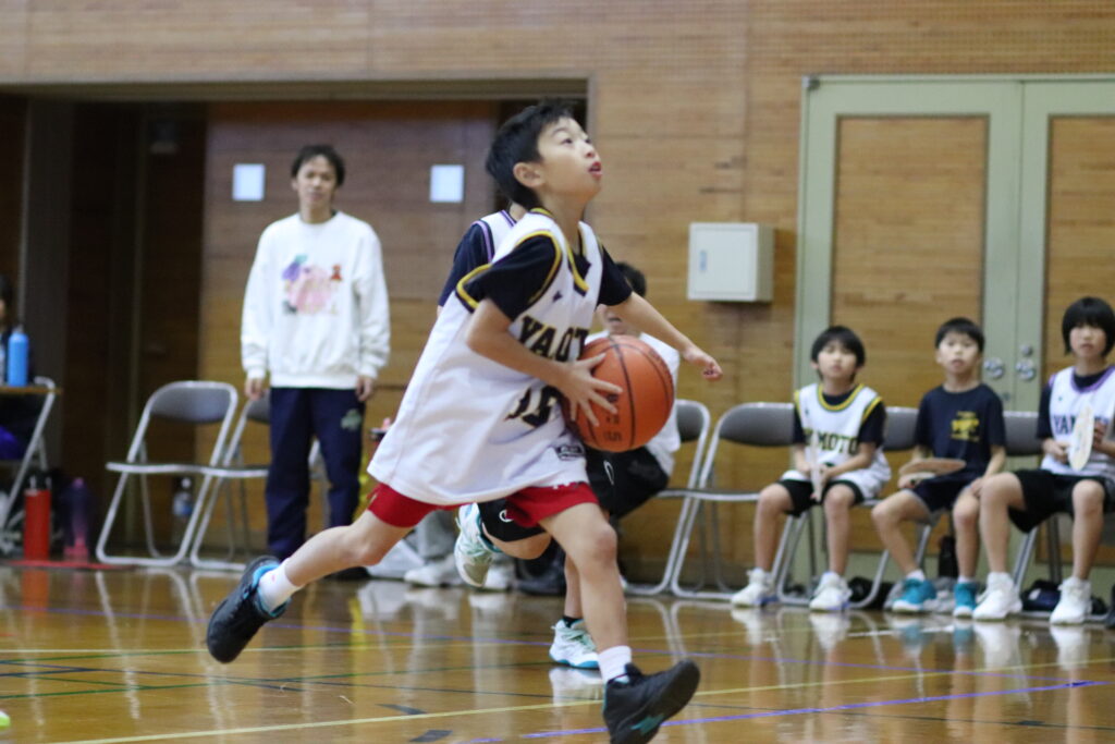 対外試合2回目でしたが、自分の役割であるリバウンドやルーズボールを頑張ってくれました。ゴール下のシュートも決めて得点もしましたね。この調子でどんどん試合に出てバスケットの理解と経験を積み、自分ができること、できるようになりたいことを発見していきましょう。