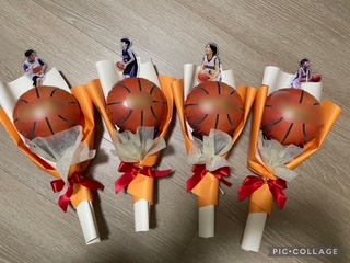 6年生からチームへは、ナップサック。かっこいいです!メンバーでお揃いの物があると団結力が高まる気がしますね。そして6年生から保護者へは、プレー中のかっこいい姿をかたどったアクリルスタンドのブーケが贈られました。我が子のアクスタ…5年生以下のメンバーの分も欲しい(笑)